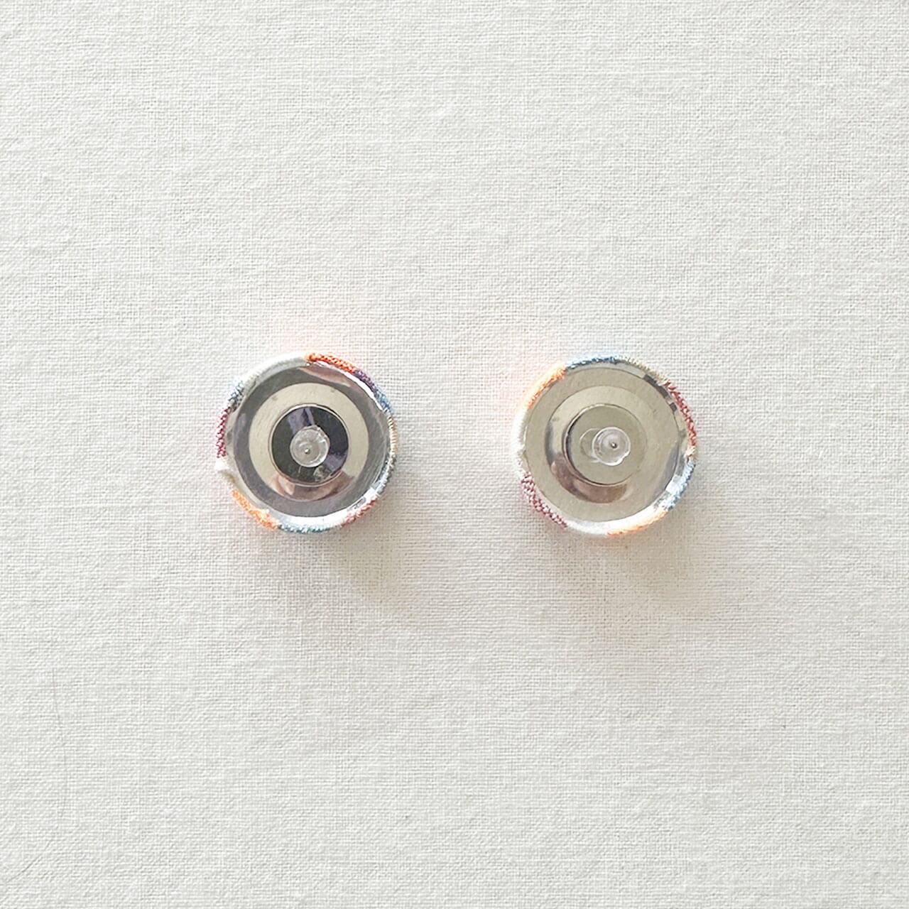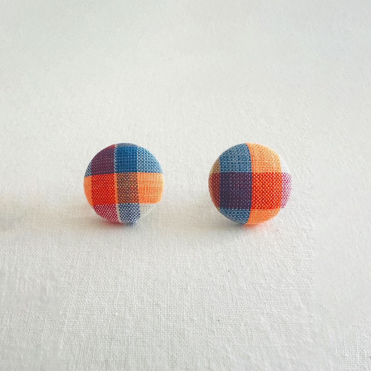 タイの伝統生地PHA KHAO MA「パーカオマー」のイヤアクセは、チェック柄がわかりやすく存在感がありながらも大きすぎない22mmの円形です。